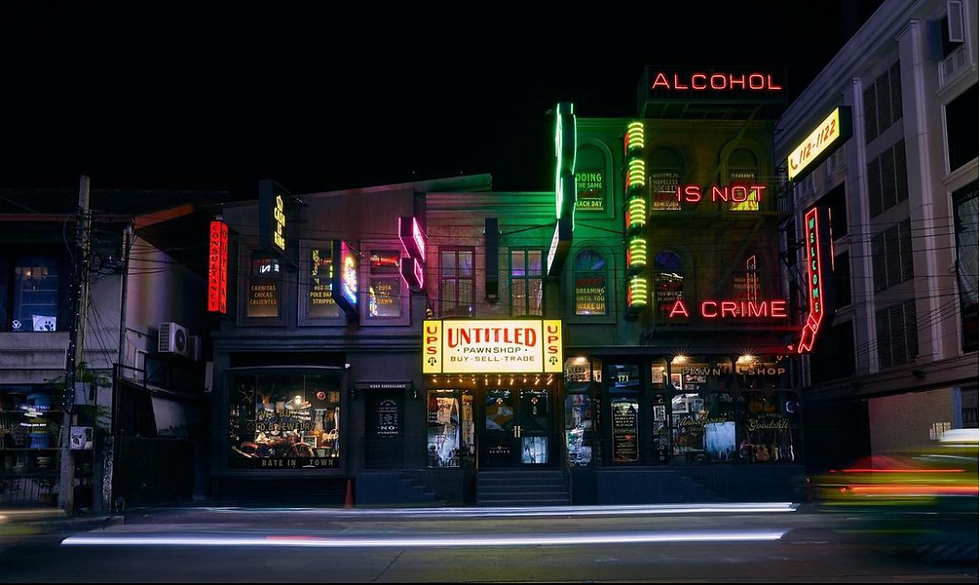 บาร์เปิดใหม่ งานดีไซน์อย่างเจ๋ง มาในแนว American Pawnshop จากยุค 1960’s - 1970’s ตัวหนังสือขนาดใหญ่ที่เขียนว่า “Alcohol is not a Crime”แปลได้ว่า แอลกอออล์ไม่ใช่อาชญากรรม ช่างสร้างความรู้สึกสุดจี๊ดให้กับนักดื่มจริงๆ