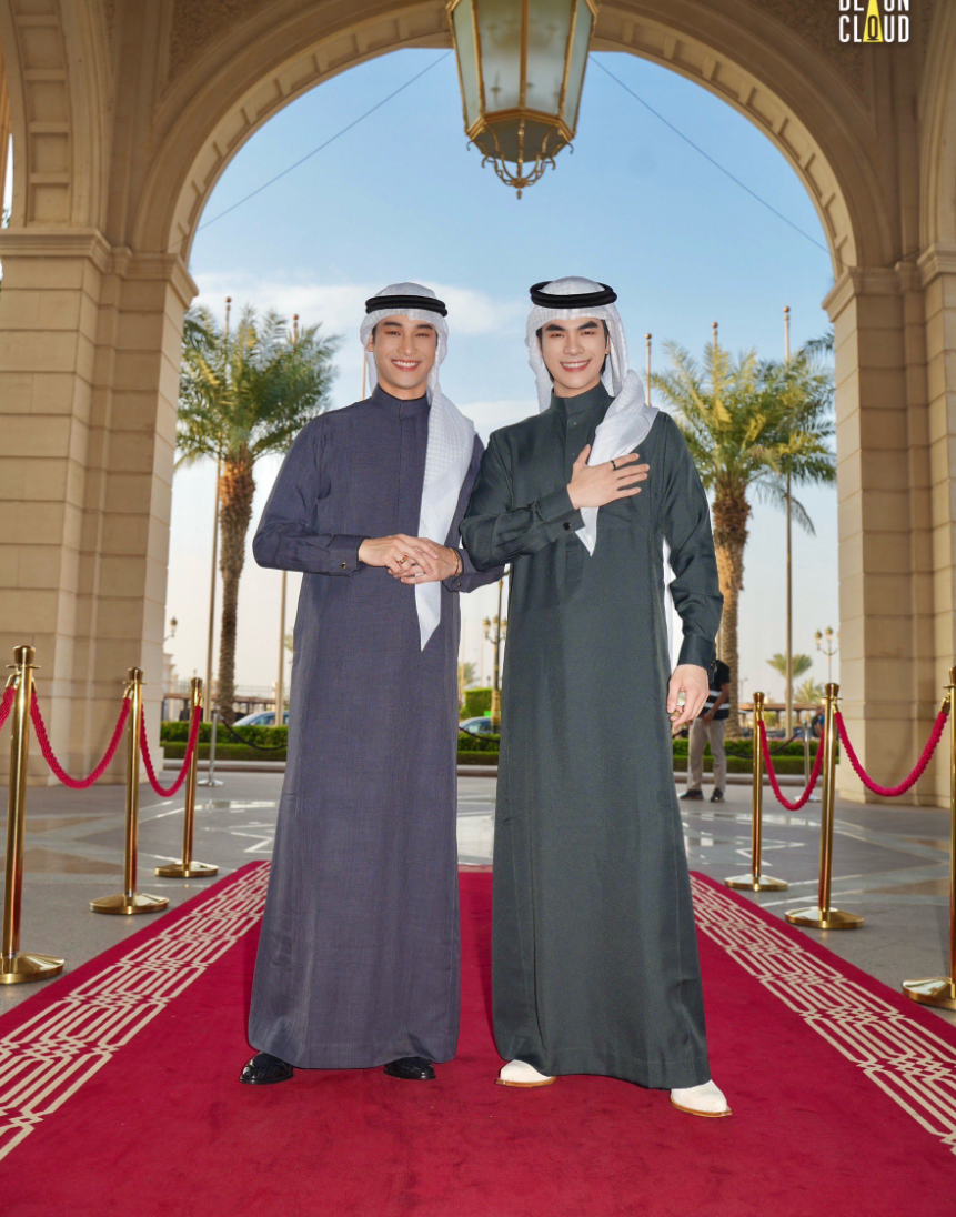 วันถัดมา ทั้งคู่มาในชุดแต่งกายประจำชาติของซาอุดิอาระเบียอย่าง Thobe (โต๊ป) ที่สร้างความประทับใจให้กับผู้ที่มาร่วมงาน โดยเฉพาะอย่างยิ่งกับสื่อ ทั้งต่างชาติและท้องถิ่นต่างกรูกันเข้ามาสัมภาษณ์ทั้งสองคนอย่างต่อเนื่องเลยทีเดียว ยังไม่พอ มายและอาโปยังเพิ่มความหรูหราให้ลุคนี้มากขึ้นด้วยเครื่องประดับชิ้นเก๋ อย่างสร้อยข้อมือ และแหวนจาก Bulgari ของ "มาย ภาคภูมิ" ในขณะที่ "อาโป ณัฐวิญญ์" คอมพลีทลุคด้วยเครื่องประดับจาก Piaget